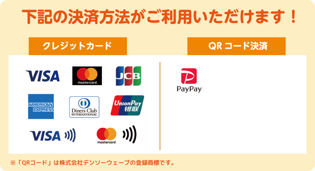 クレジット決済、QRコード決済はできませんのでご了承ください。
